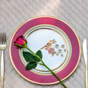 Perfectly complementing the dinner plate, the Kannauj Quarter Plate carries the same graceful sparrow motif and gold detailing. Its compact size makes it ideal for starters, salads, side servings, or even decadent desserts. While it pairs beautifully with the dinner plate for a coordinated dining set, it also shines on its own for lighter, casual meals. Each piece reflects skilled craftsmanship and timeless design, adding a sense of refinement to any occasion.