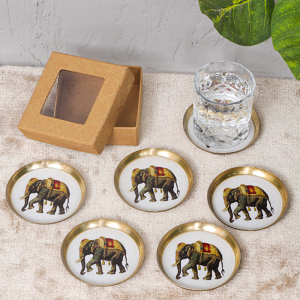 Coasters should align with your home decor and your dining table setup. Floral designs work well in elegant and minimal dining setups, adding a soft and refined touch. Traditional and cultural motifs suit heritage-inspired spaces, bringing warmth and character to the table. The blue-and-white palette of the Blue Rose Coasters (Set of 6) complements modern and classic settings alike, while the intricate elephant motif of the Elephant Print Coaster (Set of 6) adds a rich, cultural statement to festive or traditional dining arrangements.