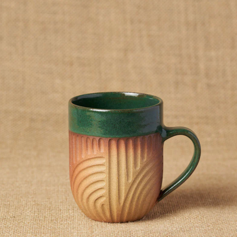 Our handcrafted ceramic mugs are made to turn your everyday routines into grounding rituals. Wheel-thrown and glazed by hand, each mug is uniquely shaped for comfort and warmth, perfect for coffee, tea, or any beverage under the sun. Crafted over 6 to 8 hours from raw clay to finished form, each piece is finished with a non-toxic and lead-free glaze. Thoughtful curves, quiet textures, and a timeless form you’ll reach for daily. Since each item is individually handmade, one may differ from the other a little in size and shape,e which makes them the most charming. The mug is food safe and can be used to serve any kind of food, hot or cold. Our products are microwave and dish washer safe. If using a dishwasher, place items securely to prevent chipping. To keep them shining, hand-wash with mild detergent and warm water, and avoid harsh scrubbers.