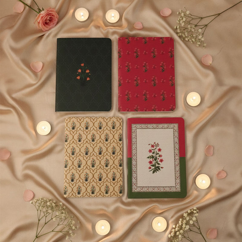 The KCC Gallery Store presents a curated Mughal Collection showcasing the regal beauty of Mughal art, which flourished in India during the 16th-17th century under Akbar, Jahangir, and Shah Jahan. Shaped by Indian craftsmanship and Persian influence, the collection includes stationery, bookmarks, coasters, and gift wraps featuring ornate floral motifs and vibrant colours. Each piece reflects timeless elegance and thoughtful design, perfect for gifting or personal collections. Embodying the timeless grace of Mughal artistry, this Diary features intricate floral patterns and ornate detailing inspired by royal manuscripts and palace gardens. Thoughtfully crafted to combine elegance with functionality, it serves as a beautiful space for your thoughts, reflections, or creative ideas. Perfect for daily journaling, note-taking, or gifting, each diary reflects the fusion of Indian craftsmanship and Persian-inspired design, a celebration of heritage and artistry in every page.