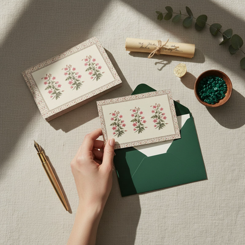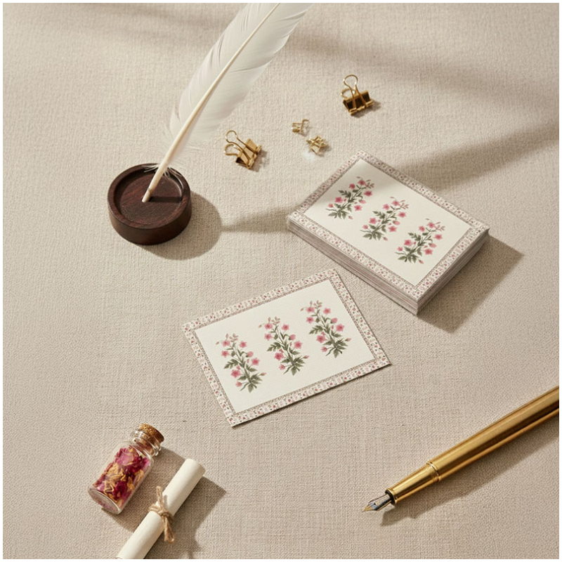 The KCC Gallery Store presents a curated Mughal Collection showcasing the regal beauty of Mughal art, which flourished in India during the 16th-17th century under Akbar, Jahangir, and Shah Jahan. Shaped by Indian craftsmanship and Persian influence, the collection includes stationery, bookmarks, coasters, and gift wraps featuring ornate floral motifs and vibrant colours. Each piece reflects timeless elegance and thoughtful design, perfect for gifting or personal collections. Our Note Cards capture the grace of Mughal gardens through detailed patterns and vibrant colours. Crafted with care and inspired by Persian and Indian artistry, these cards are ideal for heartfelt messages, invitations, or thoughtful notes, elevating the art of writing into a timeless experience.