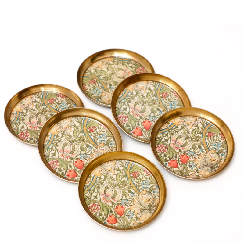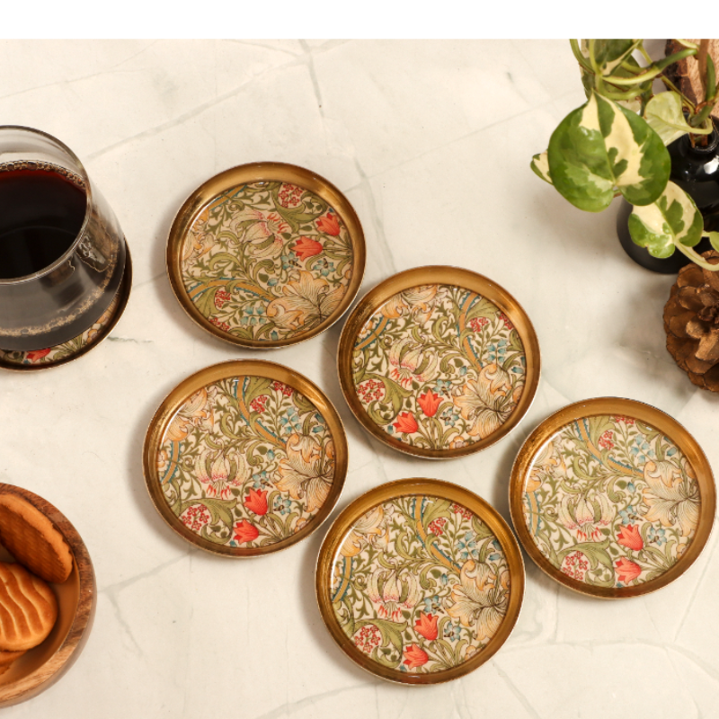 Each coaster is meticulously crafted from durable metal, ensuring both longevity and resistance to daily wear and tear. The coasters showcase the exquisite vintage lilies in full bloom pattern, adding an elegant touch to your decor.The smooth enamel coating not only enhances the vintage lilies design but also provides a protective layer, making the coasters resistant to spills and stains. They not only protect your table surface, but they also enhance your decor with their timeless vintage elegance. Do not put it in the dishwasher, microwave, freezer, or oven. Wipe with a damp cloth and dry. Occasionally,y wipe it with mild soapy water and dry it immediately thoroughly. Do not scrub or use any hard chemicals.